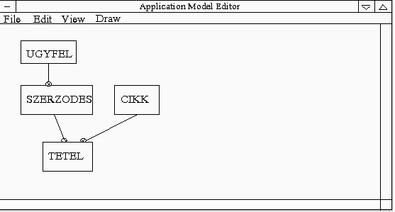 közöttük lévő kulcsos kapcsolatokat teszi láthatóvá. Az Uniface-ben önállóan is létre lehet hozni ER diagrammokat, s az alkalmazás modell összes definíciós lehetőségeit az ábra objektumain keresztül is el lehet érni. A következő ábra egy mintaképet mutat